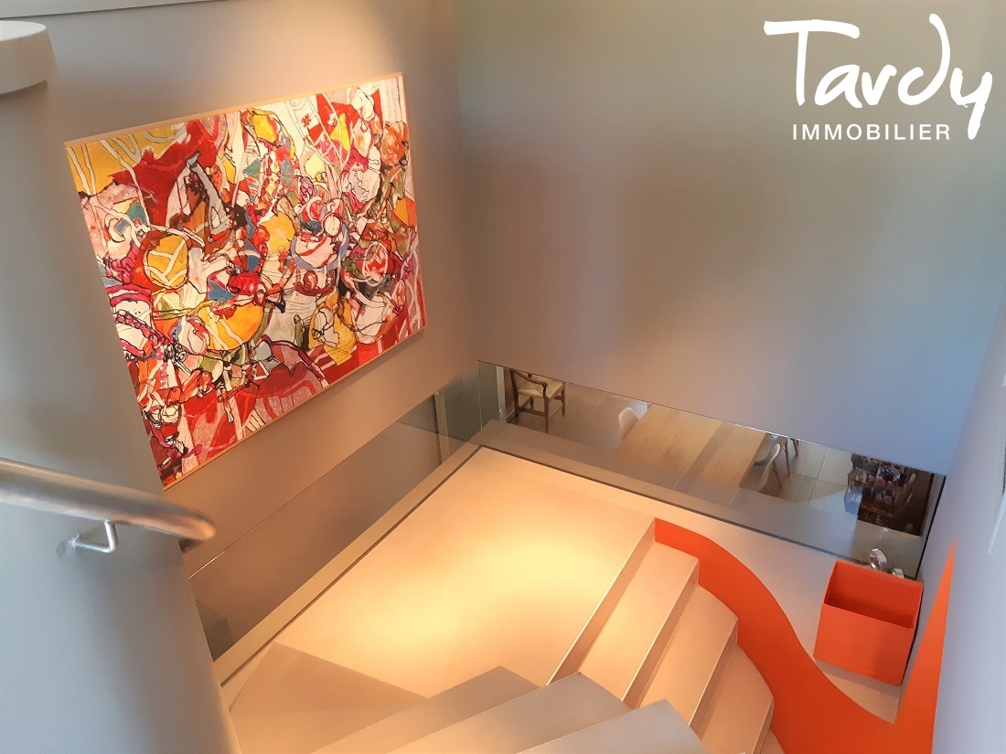 A l'étage, belle terrasse de 45 m², cinq chambres, trois salles d'eau, une suite avec dressing et vaste salle de bain et une salle de jeux mansardée.