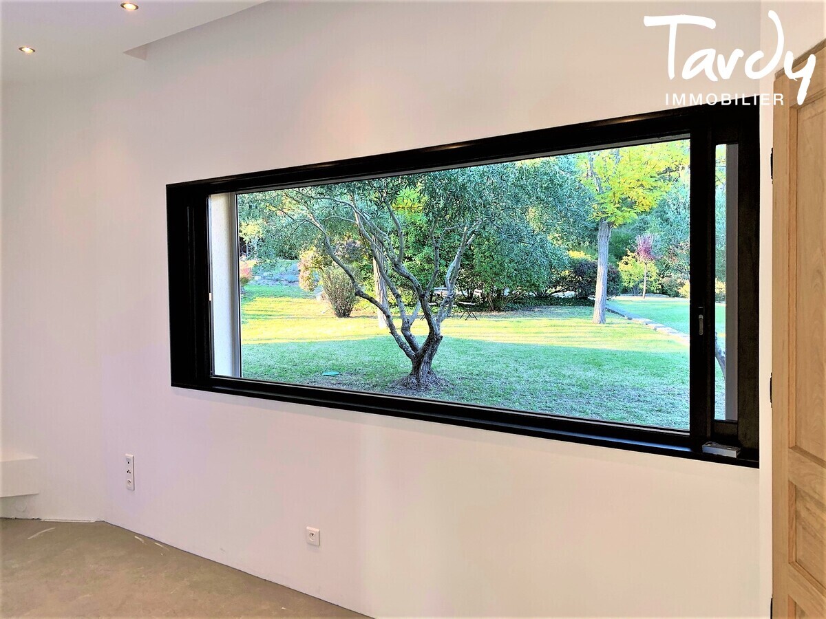 Volets roulants, piscine à débordement Diffazur de forme libre, garage, pompe à chaleur, chauffage au sol, baies en alu à galandages, parquet en chêne, eau du canal de Provence, terrain de boules, cabane au fond du jardin, tout y est pour que votre famille se sente très vite chez elle.