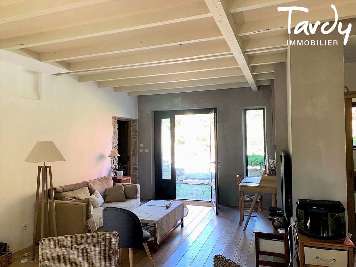 Tout d'abord c'est une maison en pierre entièrement restaurée par ses propriétaires de 80m², située sur un terrain d'environ 4000m² arboré et paysagé, au calme mais non isolée et non loin des axes principaux. La magie opère dans le jardin, une bulle de nature et de bien être.