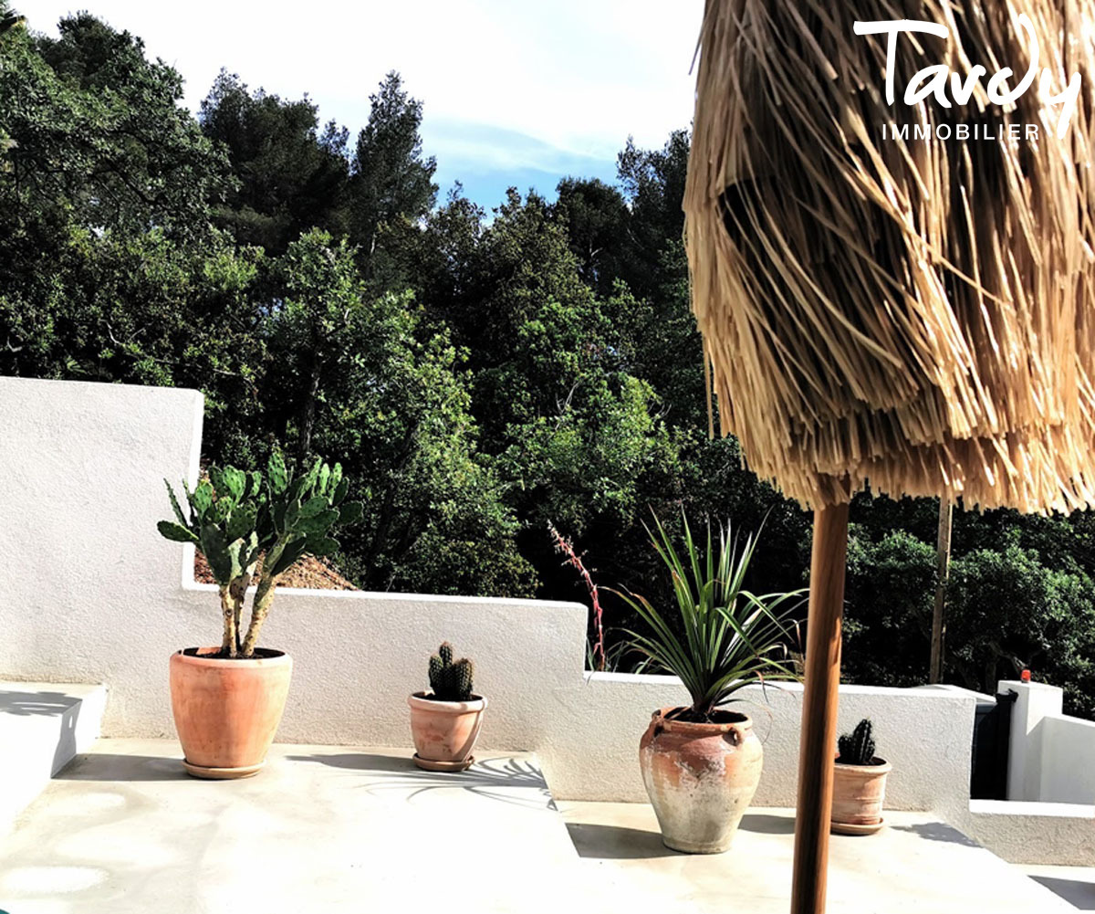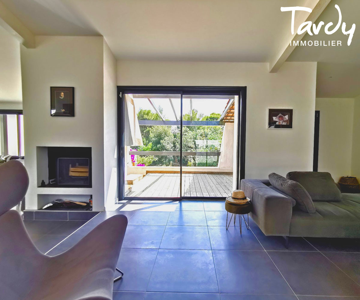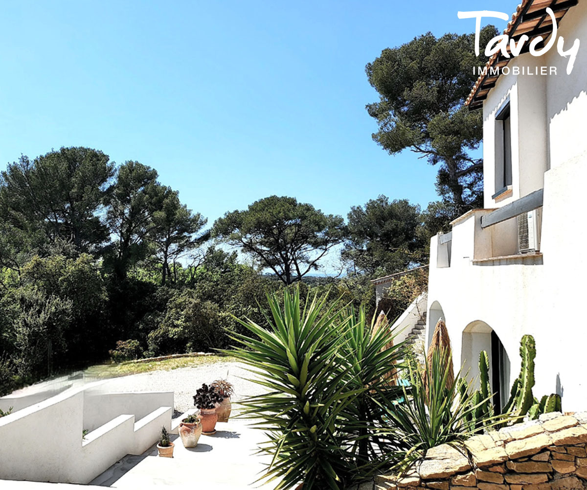 Ce bien a été vendu par Zélia - A seulement 10 minutes à pieds du pittoresque port du BRUSC, de ses commerces et de ses plages. Villa d'architecte d’environ 250 m² entièrement rénovée, et parfaitement implantée dans un jardin paysager d’environ 1350m² jamais ennuyeux pour l’œil avec ses multiples terrasses en bois et points de vue.